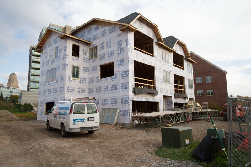 Site work, drainage, plumbing, and landscaping for Ellicott Development’s townhome condos at Ojibwa Circle, Buffalo, NY.